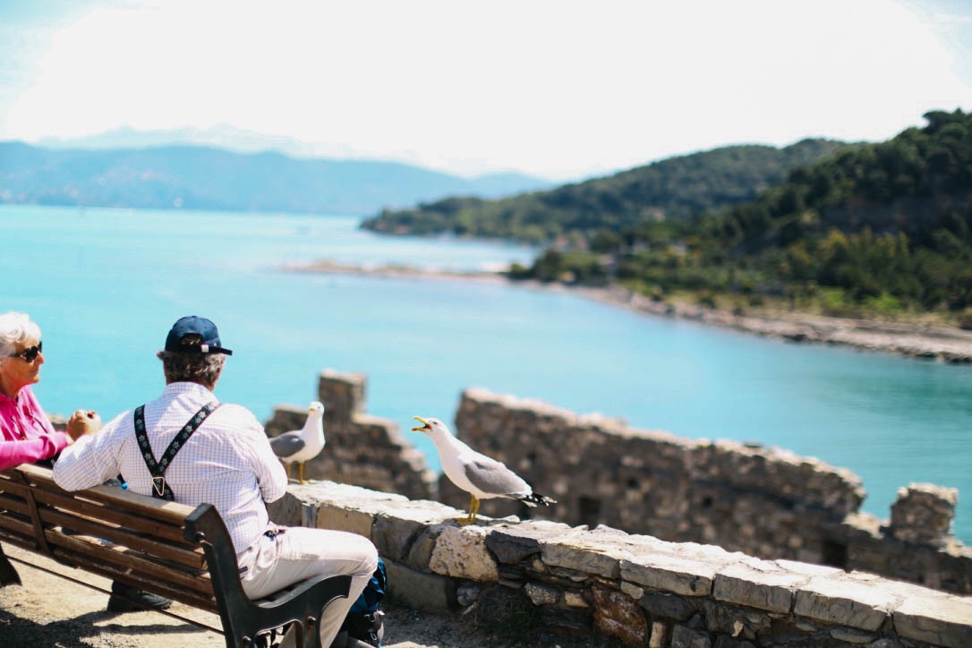 This day was probably one of the most fantastic days of all of history. First of all, the boat ride to Portovenere was incredibly beautiful. The water was turquoise, the air was crisp, and the sun was shining bright (I may have gotten a little sunburned, sorry mom). We were able to see our beautiful little temporary home of Vernazza from the water as well as see the other towns of the Cinque Terre. It was a photographers dream! After a 45 minute boat ride, we arrived in picture perfect Portoverne where we saw a cute dog splashing around in the water within the first 2 minutes off the boat. After seeing the dog, we knew we were in love with the town. We hiked up to a church on the hill and even saw a castle! Also, if you know me, you know that I love pesto more than almost anything (except watermelon) and there was pesto LITERALLY EVERYWHERE in Portoverne. We sampled some of the best pesto in the entire universe and I almost cried it was so good. At the end of this beautiful afternoon, we took the boat back to Vernazza where we were welcomed back to a town flooded with day trippers. I can’t help but still be so thankful that the train strike was happening during our full day in the Cinque Terre. As for now, we are on the train to Bologna and we are so sad to say goodbye to the beautiful seaside villages. One thing is for sure, our legs are happy to be resting for a few hours!